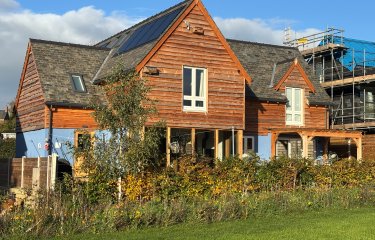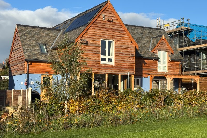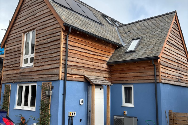 The house has insulation above current building regulations with an airtight lining. Our home has 6.3kWh solar panel array, 40kWh grid connected storage battery with grid trading software, and MVHR. An air source heat pump (ASHP) was installed, connected to underfloor heating downstairs, and an air-to-air heat pump was fitted as a backup. The later also acts as air conditioning. We also have an efficient wood burner and run two electric vehicles (EV). Lastly, we have rainwater harvesting for garden use and washing the cars.